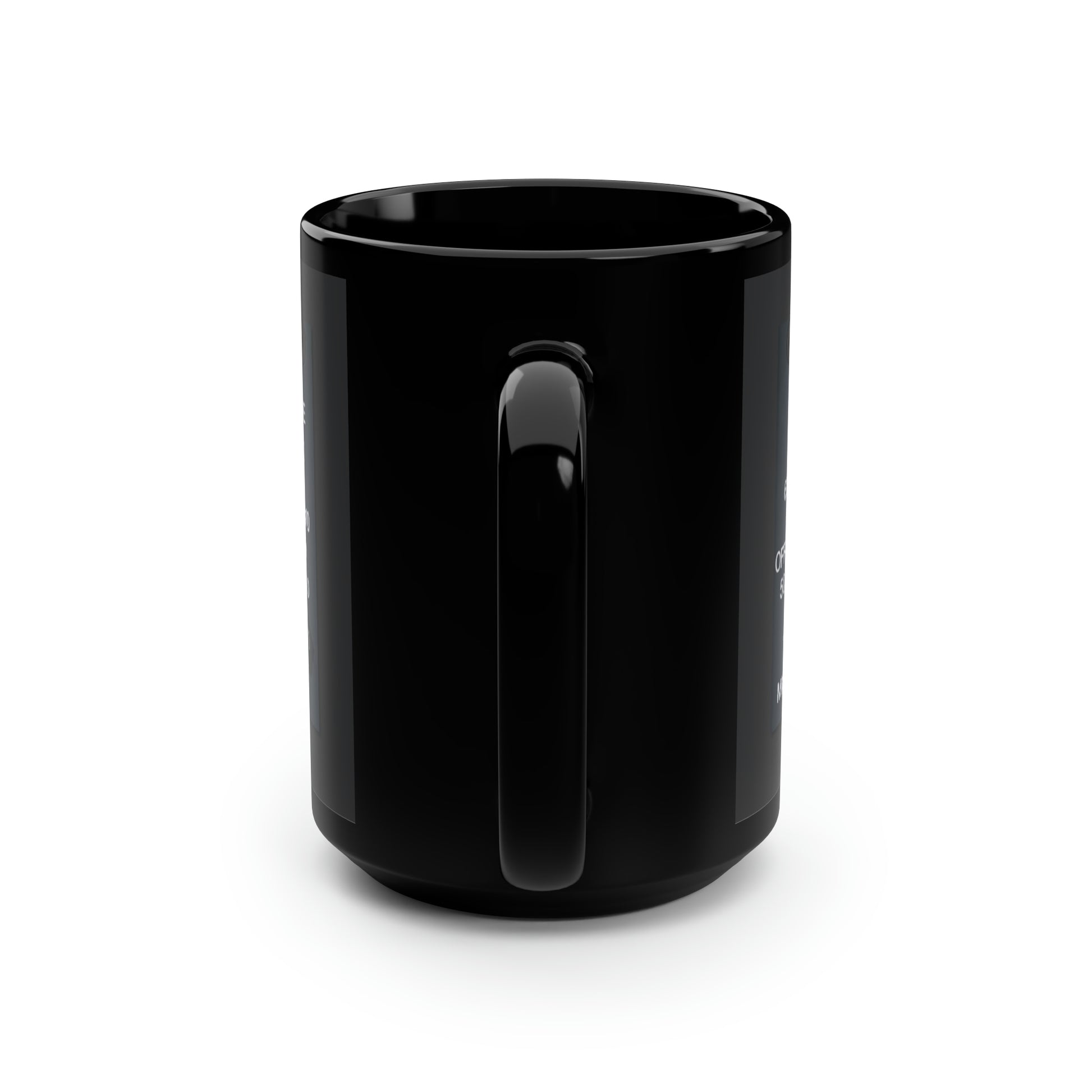 These black mugs come in one size – 15oz (0.44l) – plenty for morning caffeine boosts and hot cups of tea on a rainy day. They're easy to grip and feel sturdy thanks to the C-shaped handle. Printed on the black ceramic material in picture-perfect quality with a glossy finish.